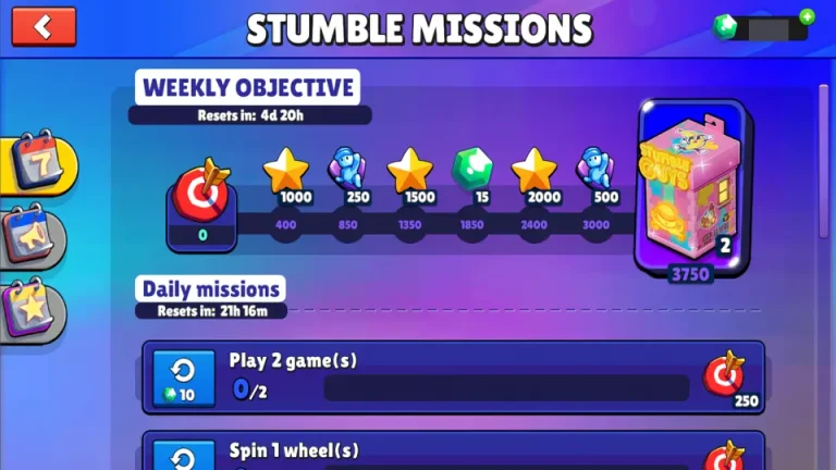 Stumble Guys missions are special tasks set in the game to help players earn experience, unlock rewards, and stay engaged over time. These missions come in different types. Players receive rewards for completing them. Players must know how missions work to get the most out of gameplay.